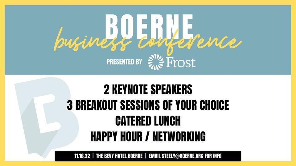 Boerne Business Conference Presented By Frost The Bevy Hotel Boerne A Doubletree By Hilton November 16 2022 Allevents In